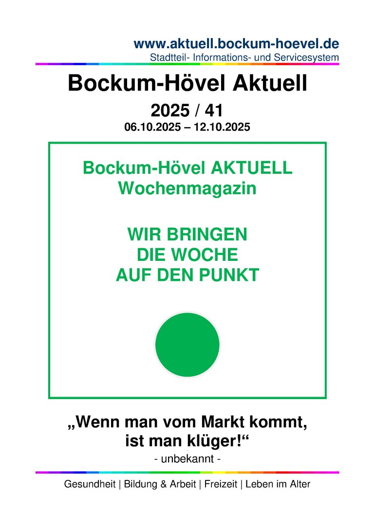![]() Bockum-Hövel AKTUELLWählen Sie zwischen 4 Darstellungsmöglichkeiten 1. SMARTPHONE - ANZEIGE (diese Seite zum einfachen Scrollen) 2. FLIP-BOOK - ANZEIGE (Blätterkatalog für PC/Notebook) 3. PDF - DOWNLOAD (Zur Anzeige in Ihrem PDF Programm) Option 3. und 4. ermöglichen das Anklicken von Links im Dokument!